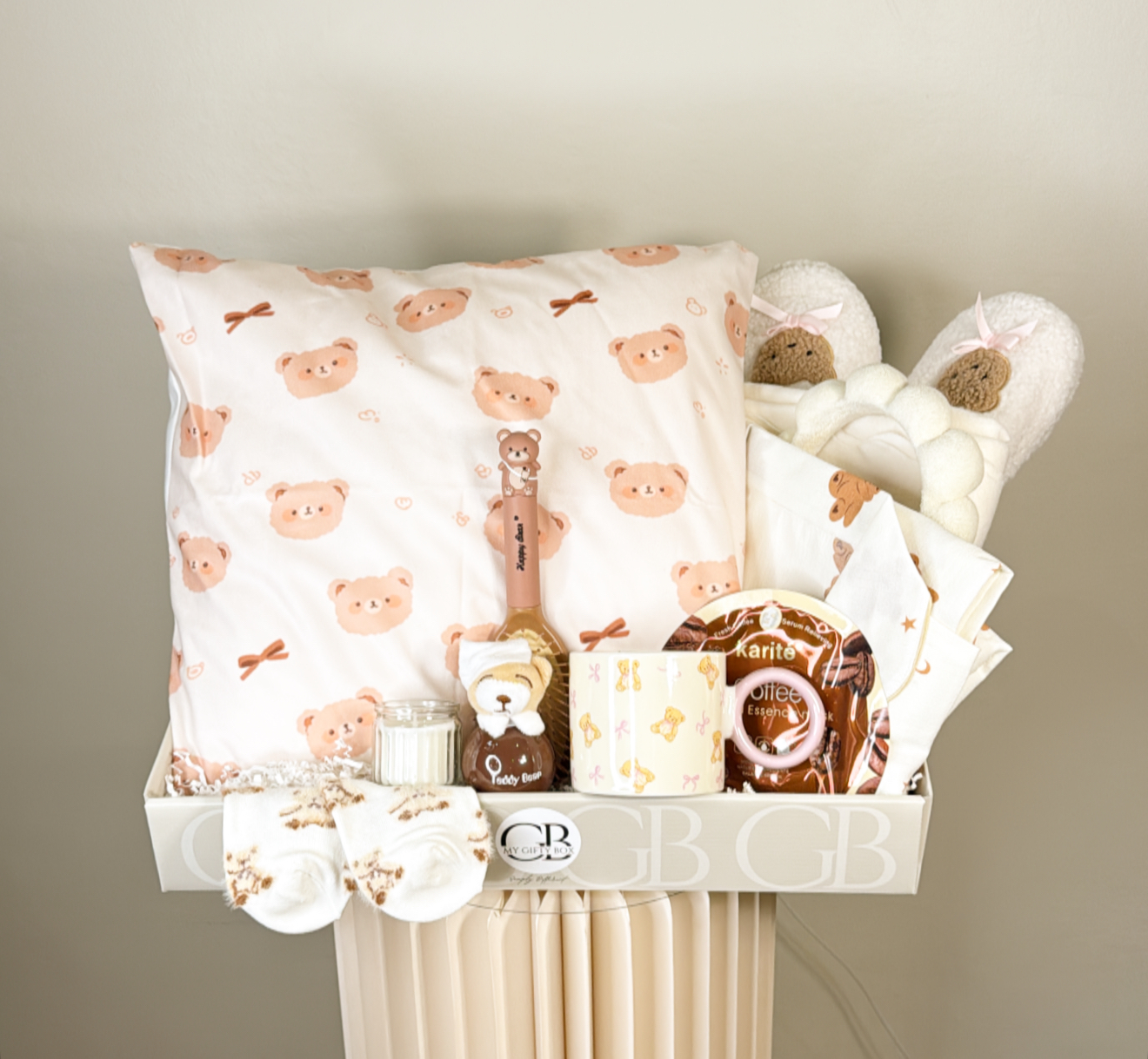 لحاف .كوشيه محشوه .بجامه قطعتين قياس m-L.حذاء منزل .عطر .جوارب .مشط للشعر .كوب مع شاي استرخاء .ماسك للوجه .شمعه معطره .تاج .شعار اكرليك حسب المناسبه .كيس وكرت اهداء خاص بالمناسبه .تصل لاحبابكم مغلفه بالتور المعطر .