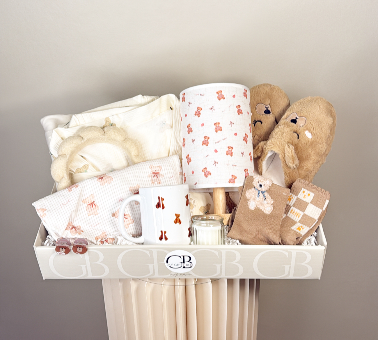 لحاف .روب منزل قياس فري سايز .ابجوره مضيئه.كوب مع شاي استرخاء .٢ جوارب .تاج .حقيبه مستلزمات شخصيه .شمعه معطره .٢ كلبس للشعر .حذاء للمنزل .شعار اكرليك حسب المناسبه .كيس وكرت اهداء خاص بالمناسبه .تصل لاحبابكم مغلفه بالتور المعطر .