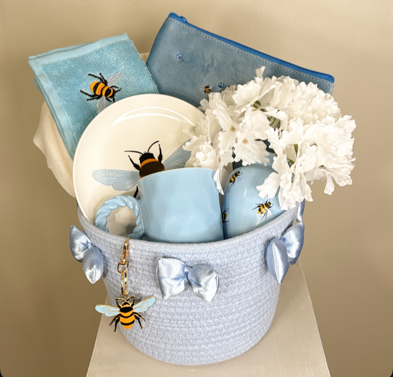 لحاف .حقيبه مستلزمات شخصيه .فازه ورد .صحن تقديم .منشفه صغيره .ميداليه .كوب مع شاي استرخاء .سله قابله لاعاده الاستخدام .شعار اكرليك حسب المناسبه .كيس وكرت اهداء خاص بالمناسبه .تصل لأحبابكم مغلفه بالتور المعطر .