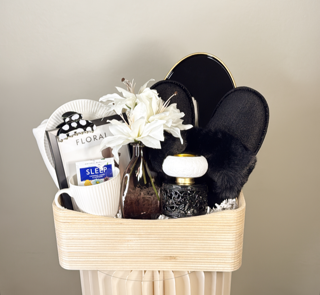 لحاف .حذاء للمنزل .لوحه .كوب بصحن مع شاي استرخاء .مبخر .فازه ورد صناعي .كلبس للشعر .صنيه تقديم شخصيه .شعار اكرليك حسب المناسبه .كيس وكرت اهداء خاص بالمناسبه .تصل لاحبابكم مغلفه بالتور المعطر .