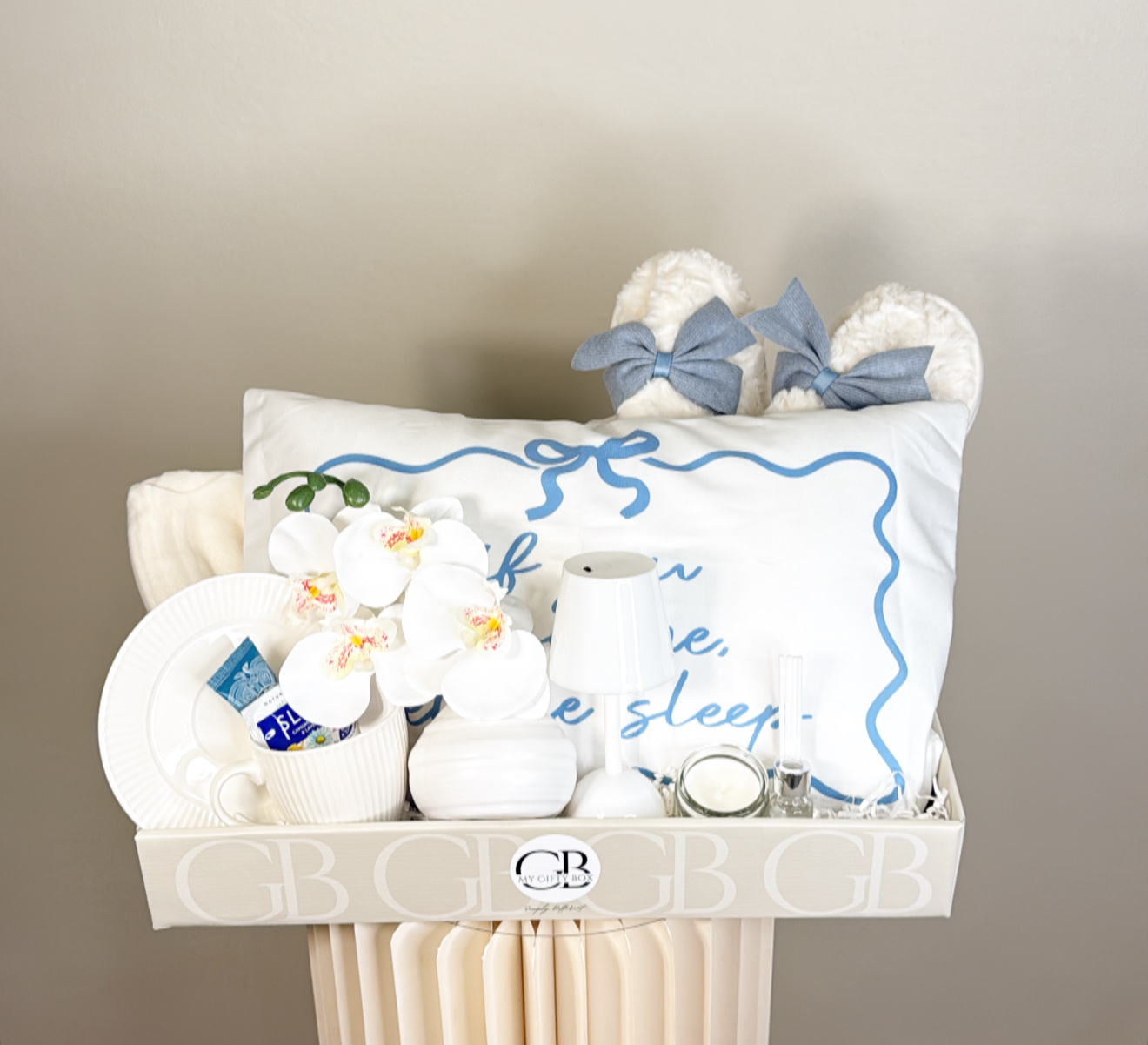 لحاف .حذاء للمنزل .كوشيه محشوه .فازه اوركيد صناعي .كريم لليد .كوب بصحن مع شاي استرخاء .شمعه معطره .ابجوره مضيئه .دفيوزر معطر للجو .شعار اكرليك حسب المناسبه .كيس وكرت اهداء خاص بالمناسبه .تصل لاحبابكم مغلفه بالتور المعطر .