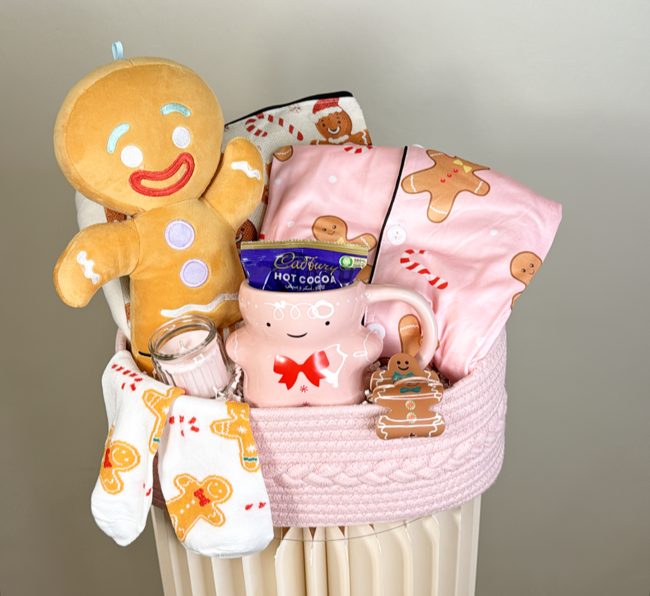 لحاف .دميه محشوه .بجامه قطعتين بقياس M-L .كوب مع مشروب هوت جوكلت .كلبس للشعر .شمعه معطره .حقيبه مستلزمات شخصيه .جوارب .سله قابله لاعاده الاستخدام .شعار اكرليك حسب المناسبه .كيس وكرت اهداء خاص بالمناسبه .تصل لاحبابكم مغلفه بالتور المعطر .