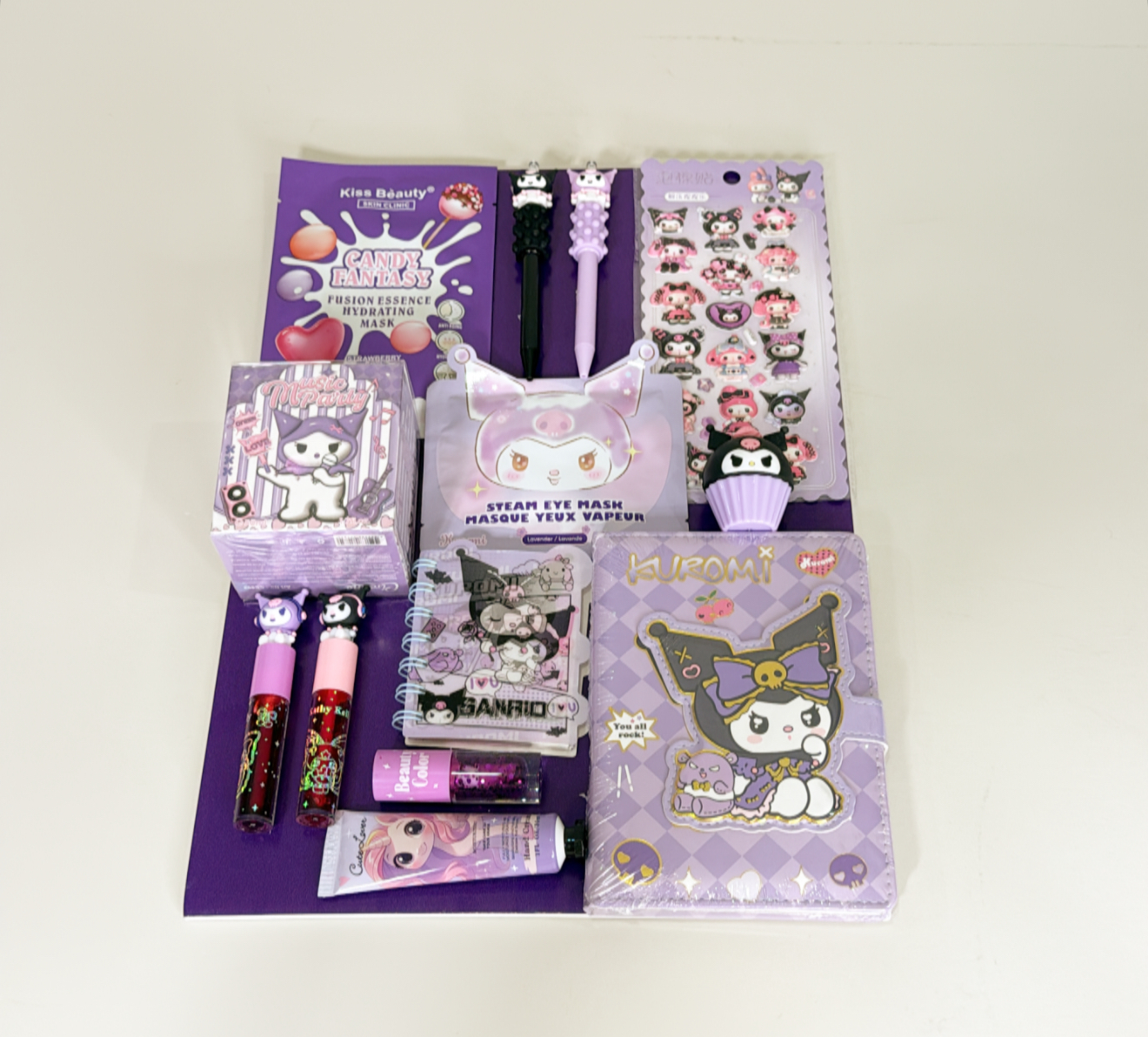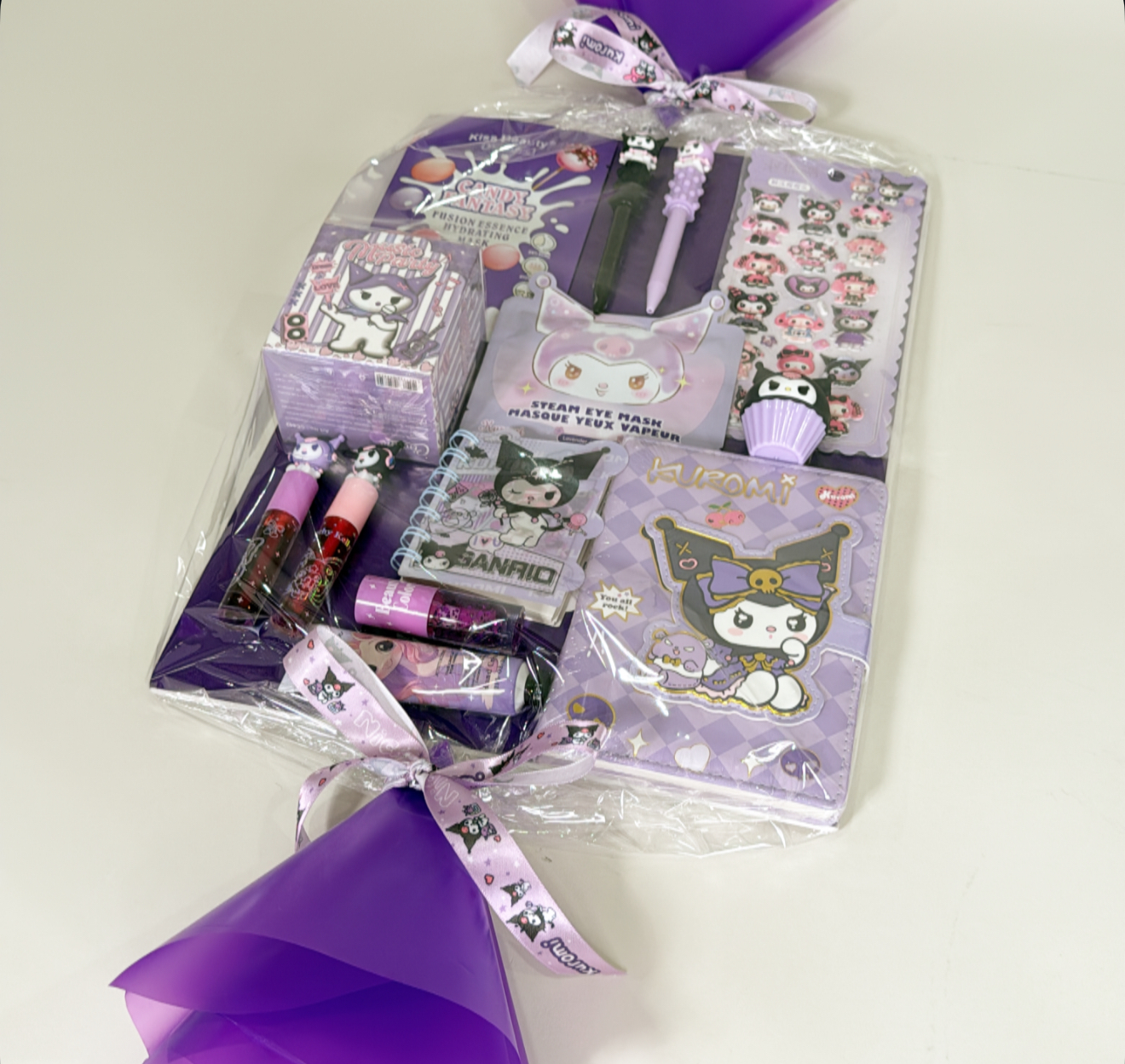 لوح على شكل حلوى يحتوي على :١٣ قطعه من منتجات الحلوى ومنتجات كرومي للميك اب والسكن كير والأدوات المكتبيه .كيس وكرت اهداء خاص بالمناسبه .