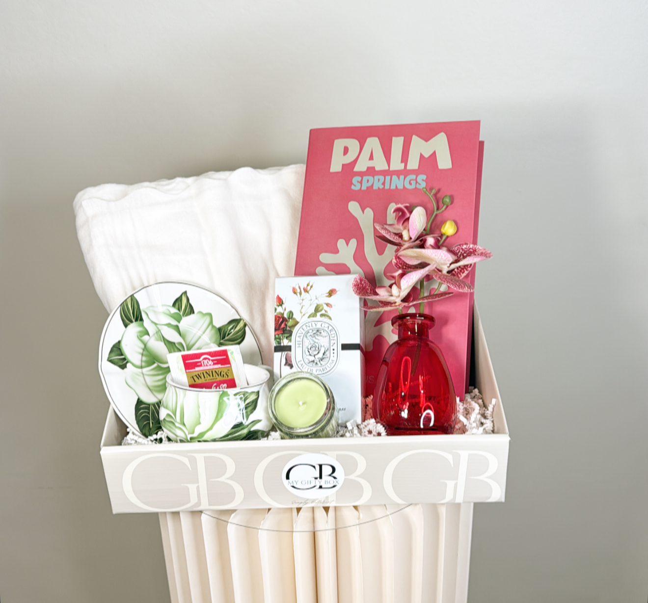 لحاف .كتاب ديكور .فازة اوركيد صناعي .كوب بصحن مع شاي استرخاء .شمعه معطره .عطر .شعار اكرليك حسب المناسبة .كيس وكرت اهداء خاص بالمناسبه .تصل لاحبابكم مغلفه بالتور المعطر .