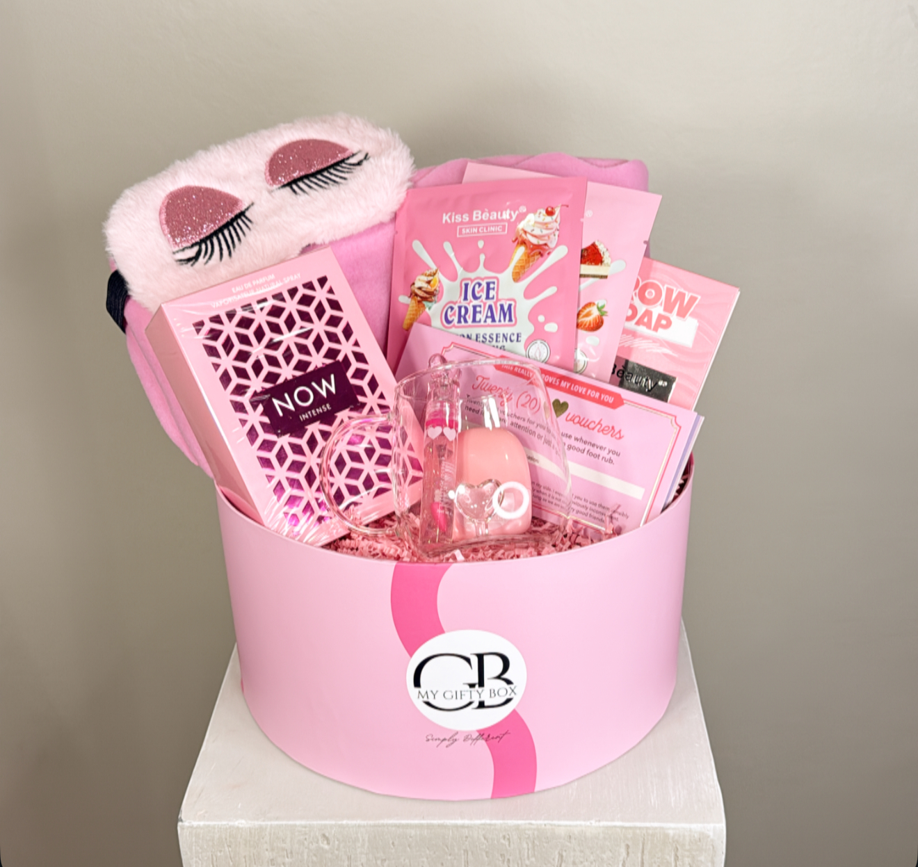 لحاف .٢٠ كوبون للحب والاهتمام والرعايه .٢ ماسك للوجه .غطاء للعين .عطر .طقم ترتيب الحواجب .كوب .كريم لليد .مرطب للشفاه .شعار اكرليك حسب المناسبه .كيس وكرت اهداء خاص بالمناسبه .اصل لاحبابكم مغلفه بالتور المعطر .