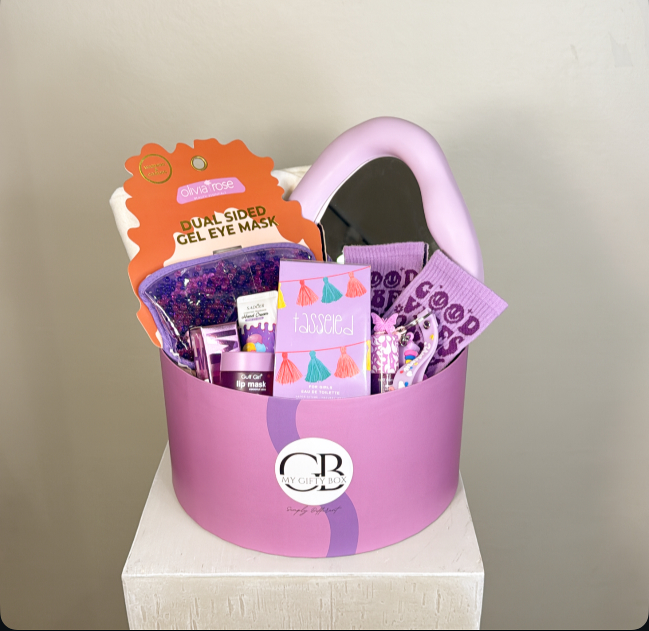 لحاف .مرايا .ماسك للشفاه .جوارب .غطاء للعين بالجل البارد .عطر .مورد للخد .كريم لليد .مرطب وملمع للشفاه .شعار اكرليك حسب المناسبة .كيس وكرت اهداء خاص بالمناسبه .تصل لاحبابكم مغلفه بالتور المعطر .