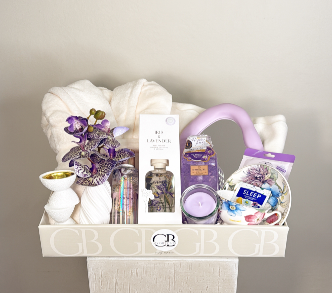 لحاف .مرايا .روب منزل قياس فري سايز .فازه اوركيد صناعي .كوب بصحن مع شاي استرخاء .ماسك للوجه .عطر .شور جل .دفيوزر معطر للجو .مبخر .شمعه معطره .شعار اكرليك حسب المناسبة .كيس وكرت اهداء خاص بالمناسبه .اصل لاحبابكم مغلفه بالتور المعطر .