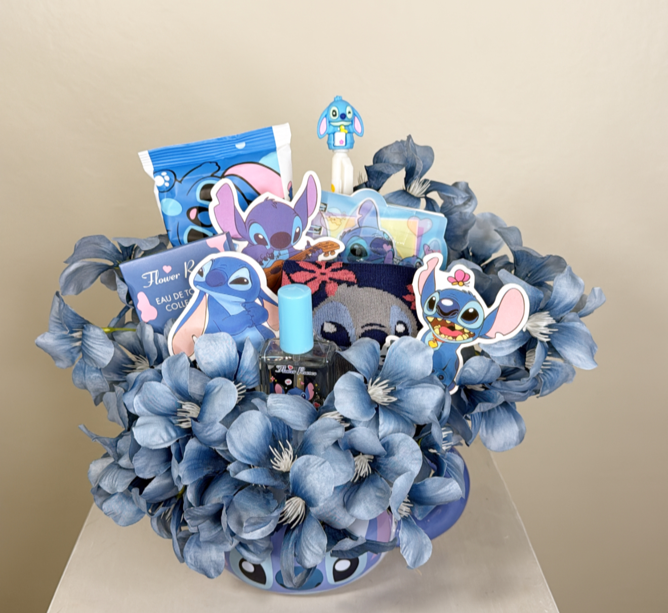 كوب ستيش مزين بالورد الصناعي .جوارب ستيش .٢ عطر ستيش .قلم - مفكره تدوين ستيش .مناديل مبلله ستيش . شعار اكرليك حسب المناسبه .كيس وكرت اهداء خاص بالمناسبه .