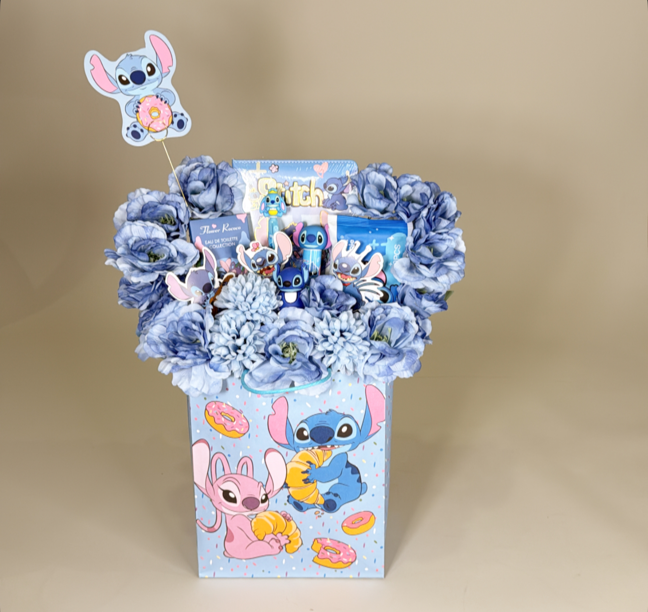 كيس ستيش مزين بالورد الصناعي .عطر ستيش .مرطب للشفاه ستيش .مفكره تدوين - قلم - صمغ ستيش .مناديل ستيش المبلله .شعار اكرليك حسب المناسبه .كيس وكرت اهداء خاص بالمناسبه .