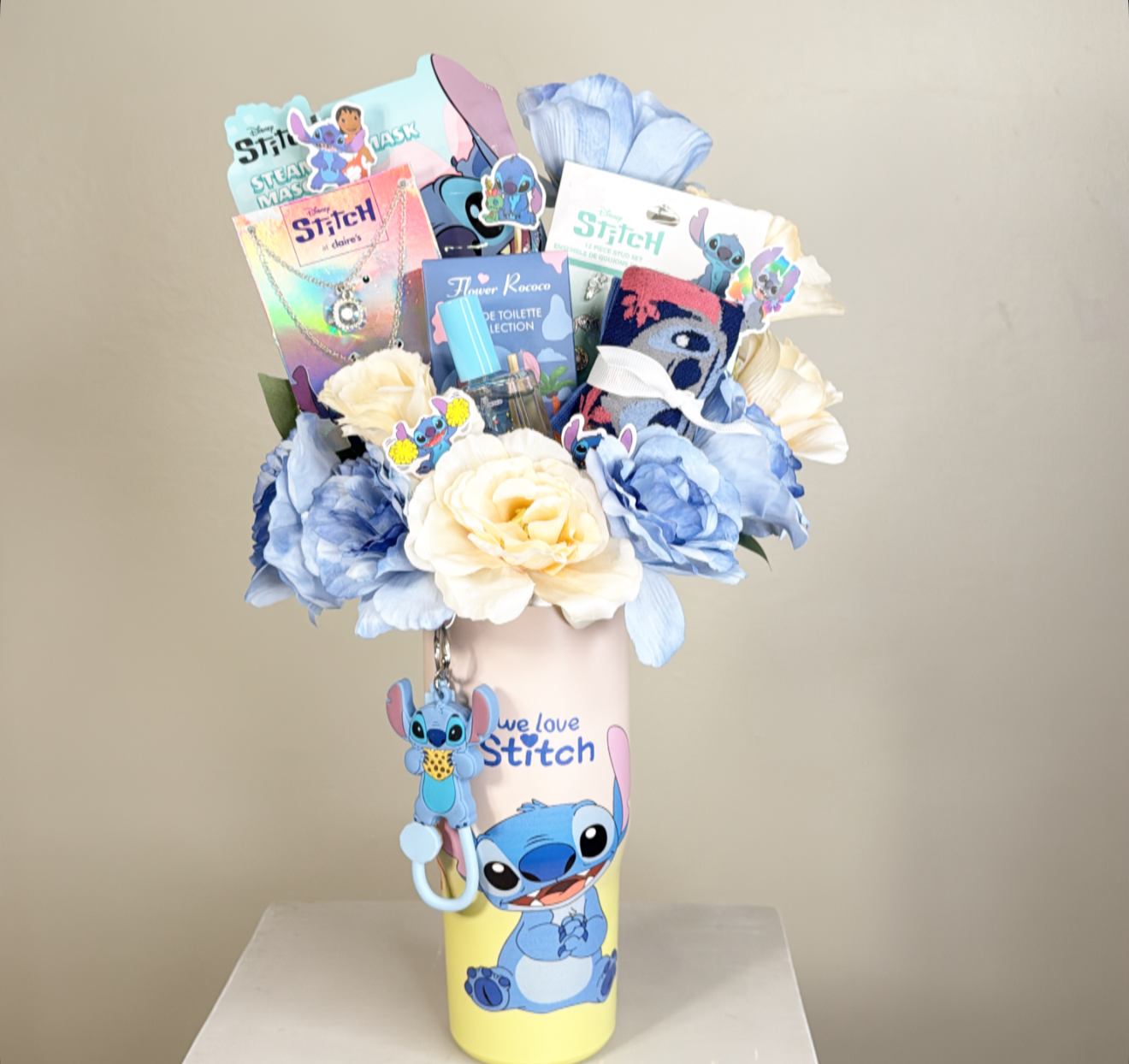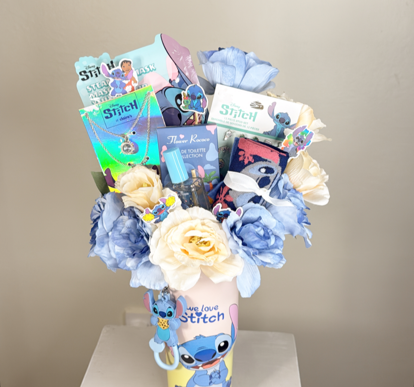 كوب ستيش حافظ للحراره بغطاء وعود ومزين بالورد الصناعي .ماسك للوجه ستيش .٢ عقد ستيش .طقم حلق للأذن ستيش مكون من ١٢ طقم .٢ عطر ستيش .جوارب ستيش .ميداليه ستيش .شعار اكرليك حسب المناسبة .كيس وكرت اهداء خاص بالمناسبه .