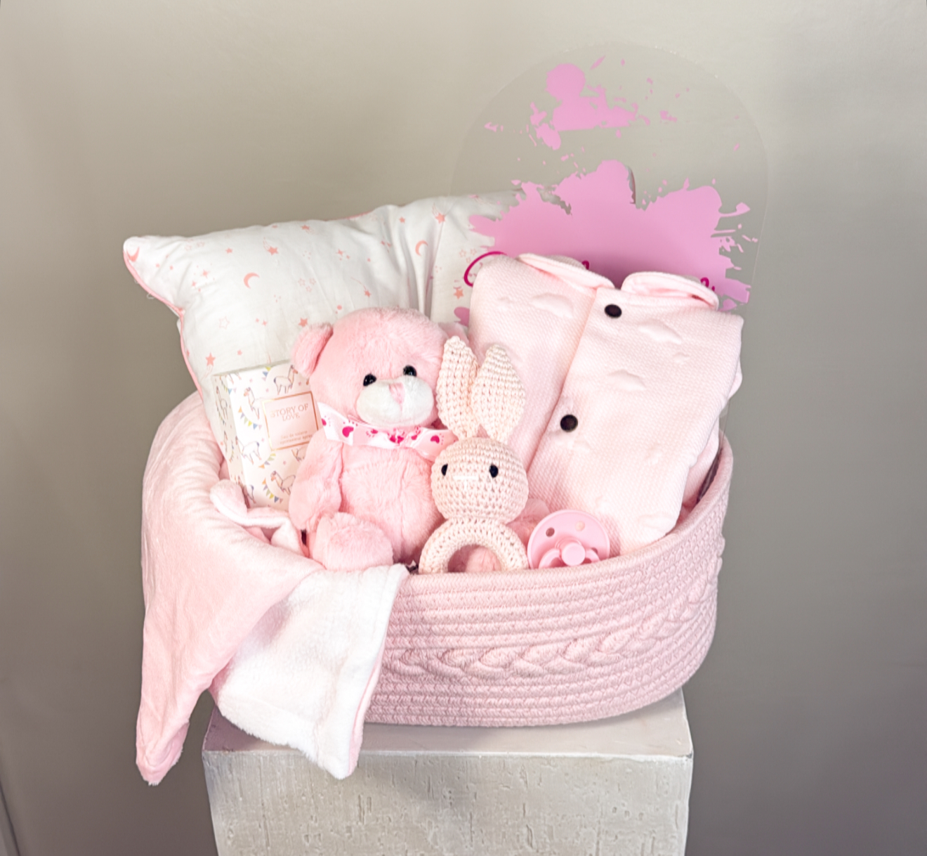 وساده بيبي .لحاف بيبي .افرول بيبي .مصاصه .لهايه .عطر بيبي .دميه قطنيه .ستاند بيبي بعباره Welcome baby .سله قابله لاعاده الاستخدام .شعار اكرليك حسب المناسبة .كيس وكرت اهداء خاص بالمناسبه .تصل لاحبابكم مغلفه بالتور المعطر .