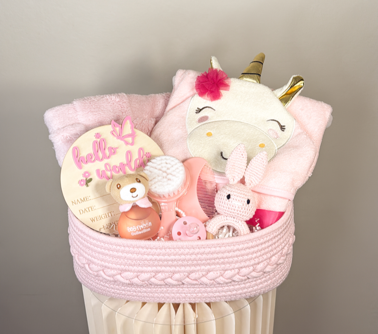 منشفه استحمام بقبعه .لحاف .لوح خشبي لذكريات المولوده .عطر بيبي .٢ مشط .لهايه .مصاصه .سله قابله لاعاده الاستخدام .شعار اكرليك للمواليد .كيس وكرت اهداء خاص بالمناسبه .تصل لاحبابكم مغلفه بالتور المعطر .